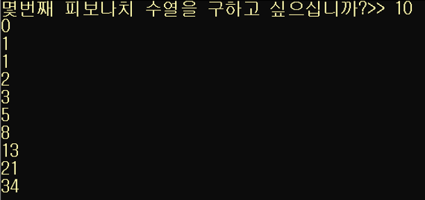 printf("몇번째 피보나치 수열을 구하고 싶으십니까?>> ");