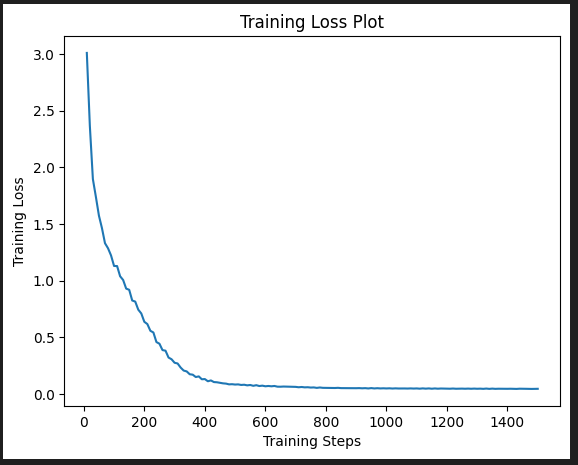 이제 train을 하고 loss를 출력해보면 잘 나왔는데 1000step까지만 학습했어도 됐을거 같다.