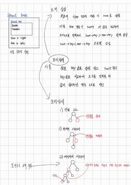 if (strcmp(data.name, p->key.name) < 0) p->left = newtree; // 키 값을 비교해서 작으면 왼쪽