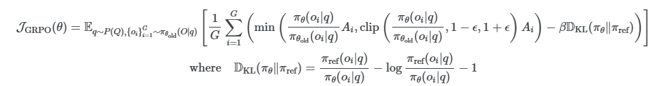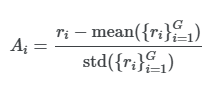 ✅ Ai: 각 출력에 대한 advantage 값, 그룹의 reward 평균을 기준으로 계산