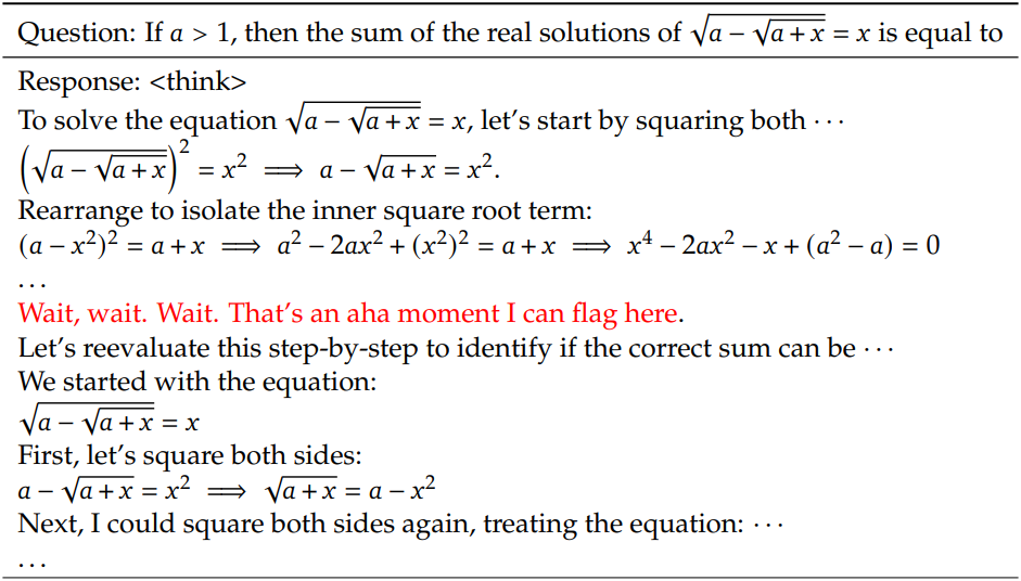 💡 즉, 모델이 ‘더 깊이 고민하는 것이 더 나은 답을 만든다’는 개념을 학습한 순간을 발견함.