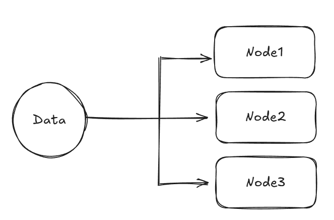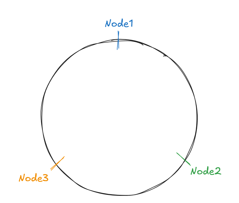 노드 3개에 데이터를 분산 저장하는 상황이 있다. 제일 쉬우면서 분산 저장하는 법은 데이터의 특정 값을 이용해 해싱 결과 값을 구하고, 해당 값의 노드로 배치하는 법이다.