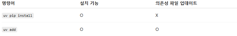uv pip install 명령 수행 후 의존성 추가를 안함
