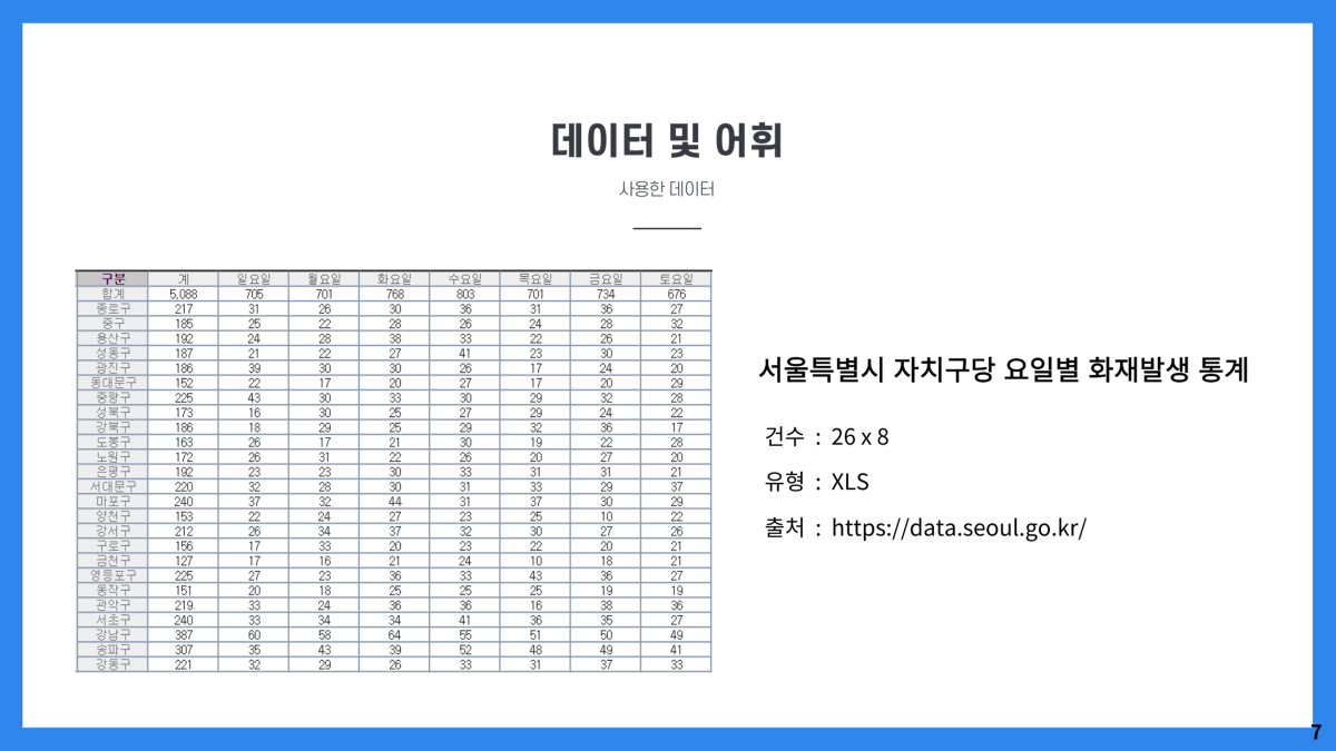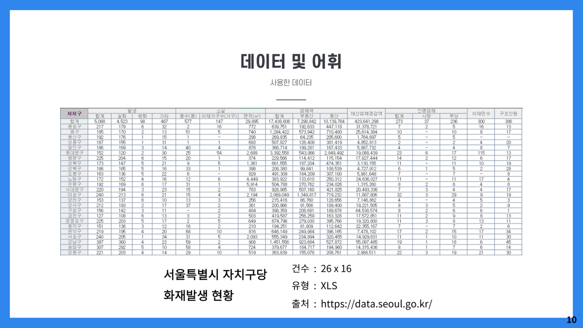 [데이터베이스, XML 프로젝트] 서울시 화재데이터 분석 본문