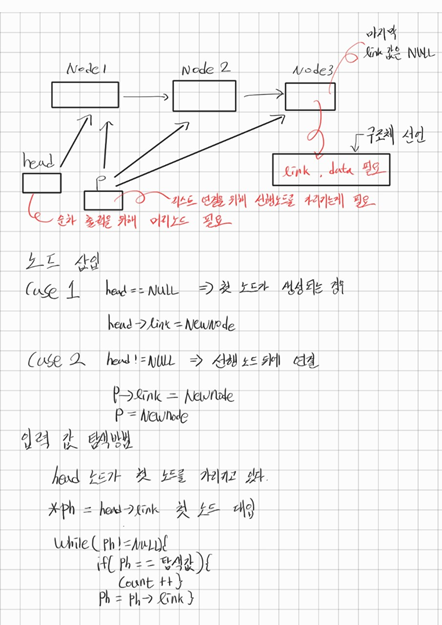 while (search != NULL) // 머리 노드가 가리키는 링크값이 NULL이 아니면 실행