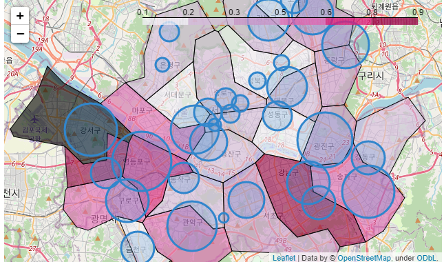 - 구별 범죄 현황과 경찰서별 검거율 지도에 표현