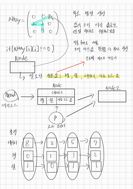 연결 리스트를 이용한 희소 행렬 표현 : C언어 본문