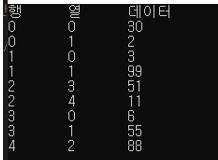printf("%d\t%d\t%d ", ph->row, ph->col, ph->data); // 행, 열, 데이터 값을 출력