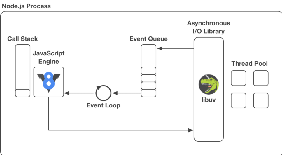 - 그렇다면 Node.js가 싱글 스레드, 논블로킹/비동기 방식을 택하면서 어떻게 하나의 스레드를 가지고 빠르게 일을 처리할 수 있는거지??????????????????????? 비밀은 이벤트 루프이다.