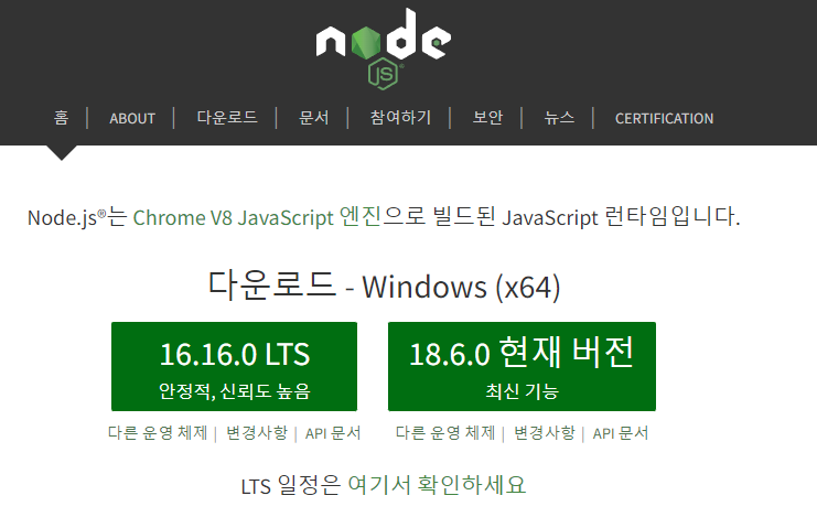 - Node.js : 웹 브라우저 밖에서 우리가 작성할 자바스크립트 서버 코드를 실행해 주는 환경, 자바스크립트를 돌리는 엔젠은 브라우저 내에 저장되어있다. Node.js는 브라우저에서 돌릴 수 있는 자바스크립트 코드를 우리의 컴퓨터 환경에서 돌릴 수 있도록 밖으로 빼놓은 것, 그러므로 Node.js 덕분에 자바스크립트를 사용하기 위해 꼭 브라우저를 사용해야 할 필요는 없다.
