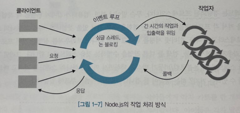 - Node.js는 비동기적 처리 방법을 이용한다.