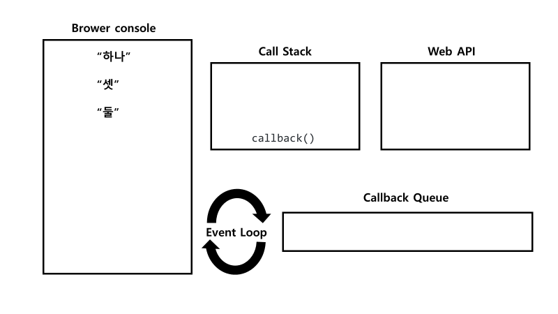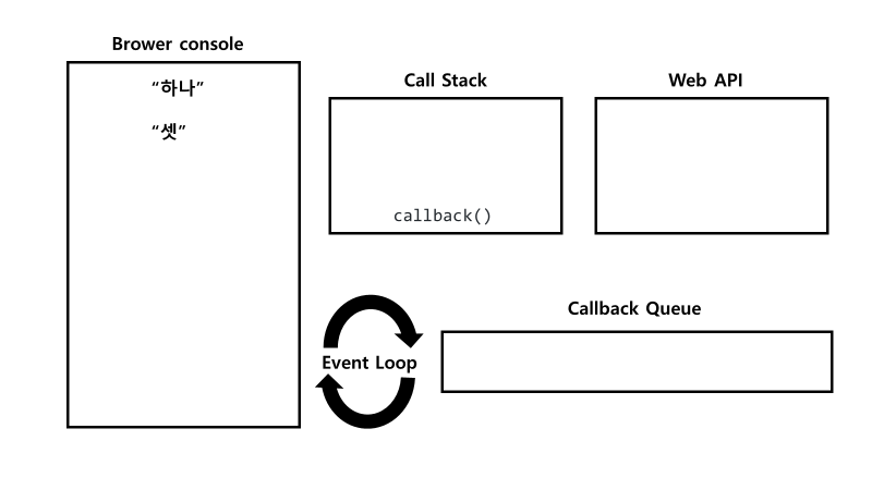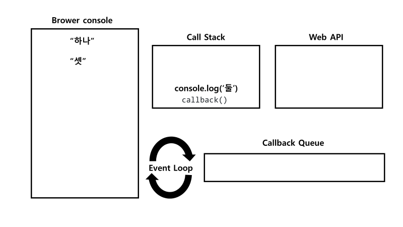 callback() 함수가 실행되고 내부에 있던 console.log('둘')이 Call Stack에 push된다.