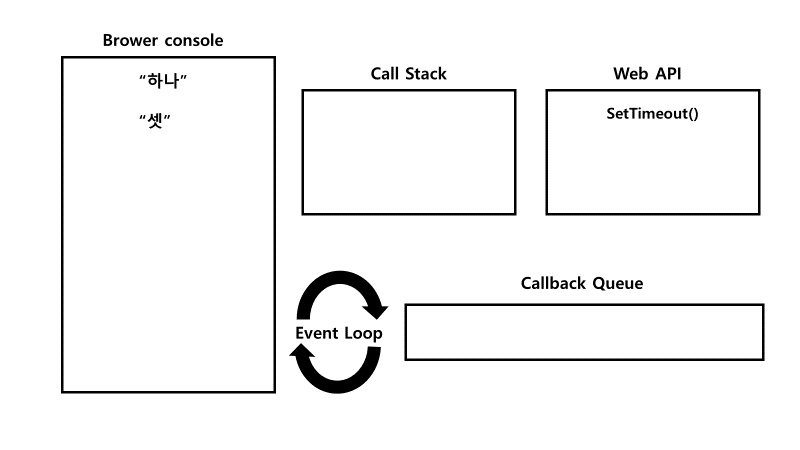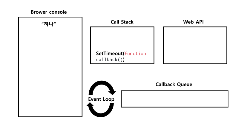 SetTimeout(function callback()) 함수가 실행 되면서 브라우저에서 제공하는 Web API를 호출 한 뒤 Call Stack에서 pop
