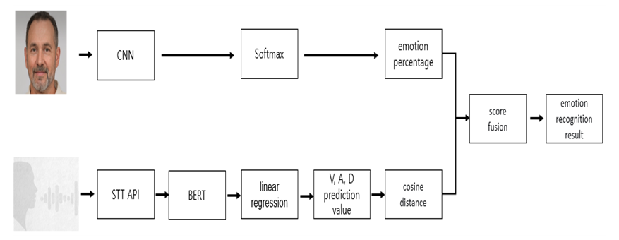 이번 포스팅에서는 얼굴 감정 인식 모델과 텍스트 감정 인식 모델의 감정을 어떻게 하나로 합치는지를 설명합니다.